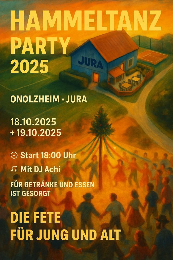 19:30 Uhr – Einmarsch der Hammeltänzer in die Festhalle, Tanz des Gewinnerpaares mit anschließender Siegesfeier bei musikalischer Umrahmung durch die Blaskapelle Onolzheim