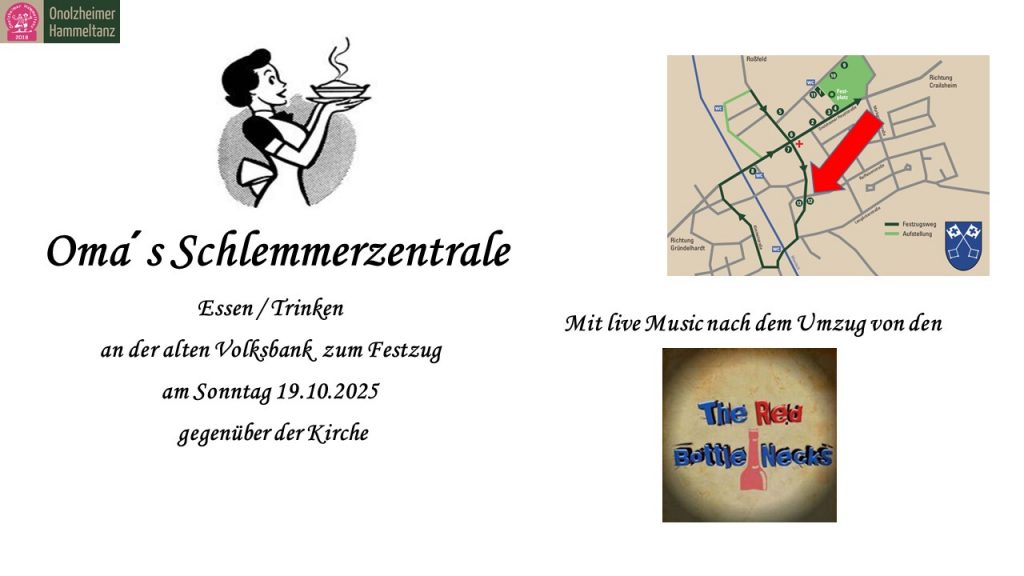 16:00 Uhr – Bewirtung rund um die Festhalle mit Blasmusik von der Onolzheimer Blaskapelle